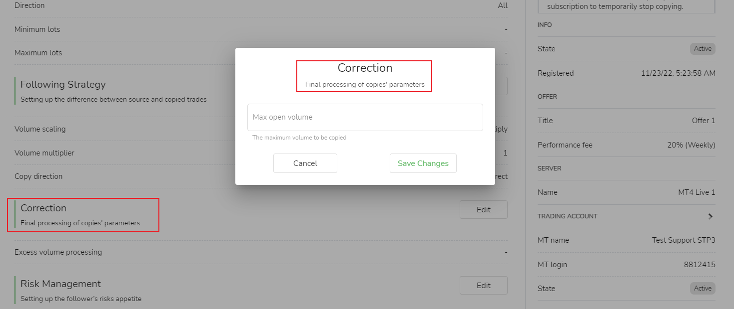 [تصغير]:إذا تجاوز المركز المراد وضعه في حساب المتابعة الحد الأقصى لحجم التداول المحدد ، فسيتم اتباعه وفقًا للحد الأقصى لحجم التداول المحدد