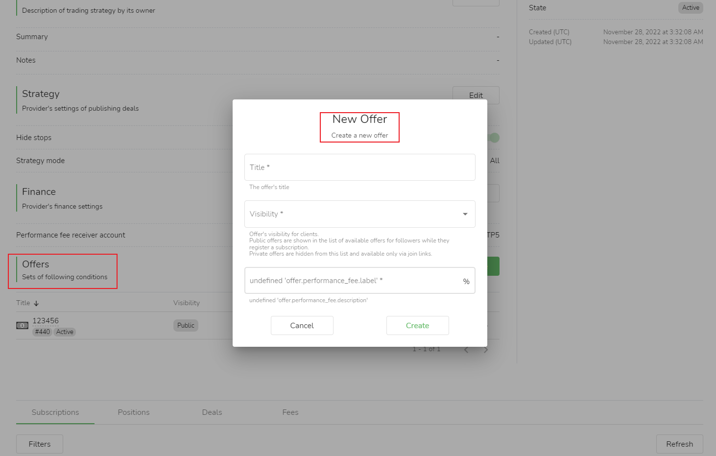 بعد الانتهاء من إنشاء مصدر إشارة جديد ، يمكنك تعيين [Title] و [Strategy] و [Performance Fee Receiving Account] وإنشاء [Copy Condition].