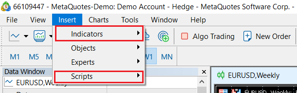 تأتي MT5 مع ما يصل إلى 38 مؤشرًا فنيًا تمت كتابتها ، ويمكن للمتداولين تعيينها بشكل مستقل واستخدامها في أي وقت ؛ انقر فوق [إدراج] في شريط القائمة ، وفي خيار [إدراج] ، حدد [المؤشر] أو [البرنامج النصي] ثم انقر فوق إضافة.