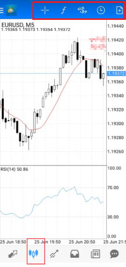 Select the corresponding variety (here, take the euro and the dollar as an example), click the button of the candlestick chart, and select the "f" indicator button.