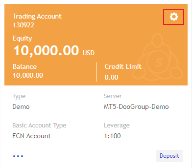 En la esquina superior derecha de la cuenta, haga clic en el engranaje, seleccione un nuevo apalancamiento y haga clic en Aceptar.