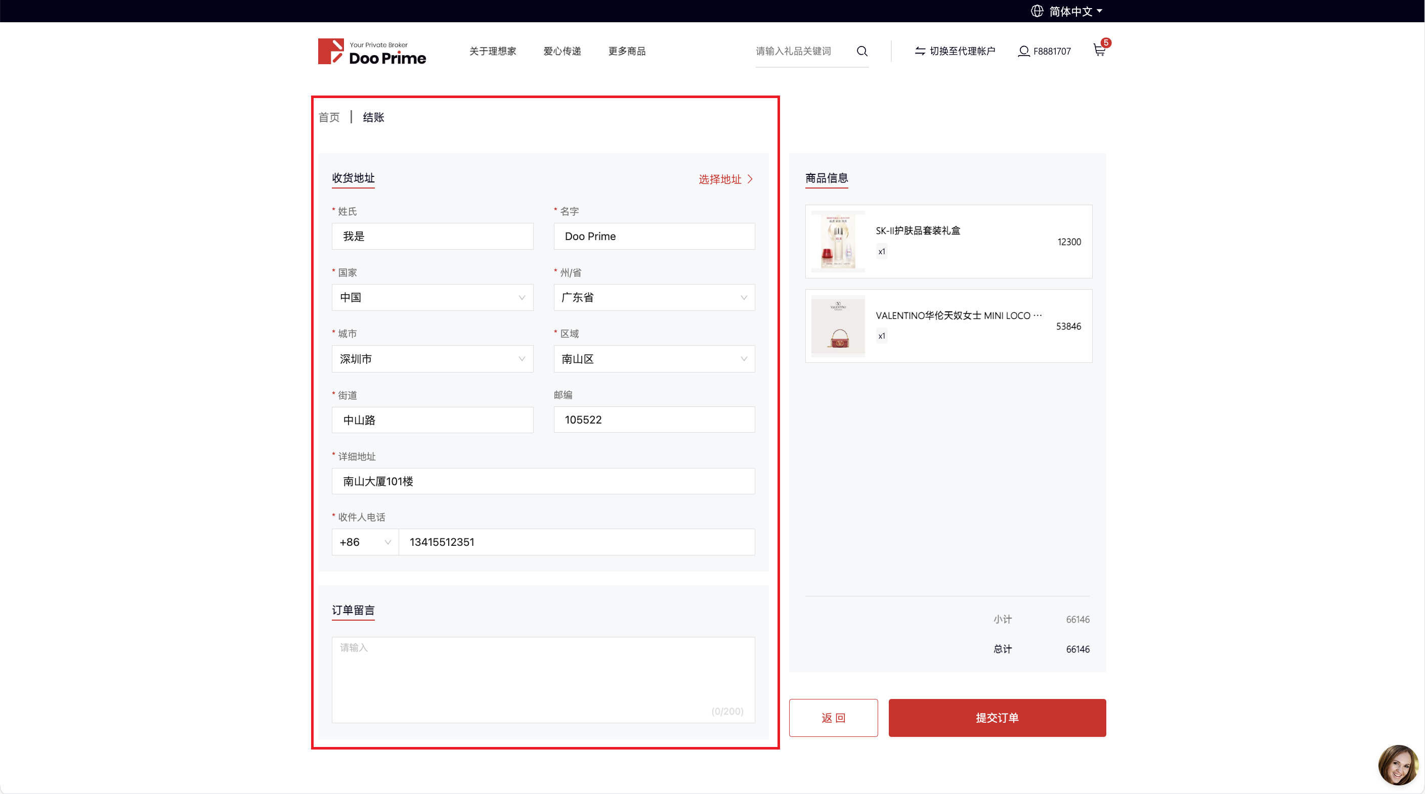 - Complete los datos de entrega y envíe el pedido. También puede configurar una dirección predeterminada y almacenar hasta 20 direcciones personalizadas.