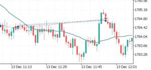 MT5 tiene por defecto las posiciones de apertura y cierre con flechas indicadoras y líneas de conexión para las posiciones de apertura y cierre, como se muestra en la figura: