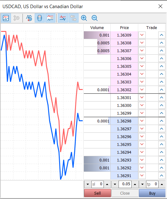 다음과 같은 시장 심도 창이 표시됩니다.