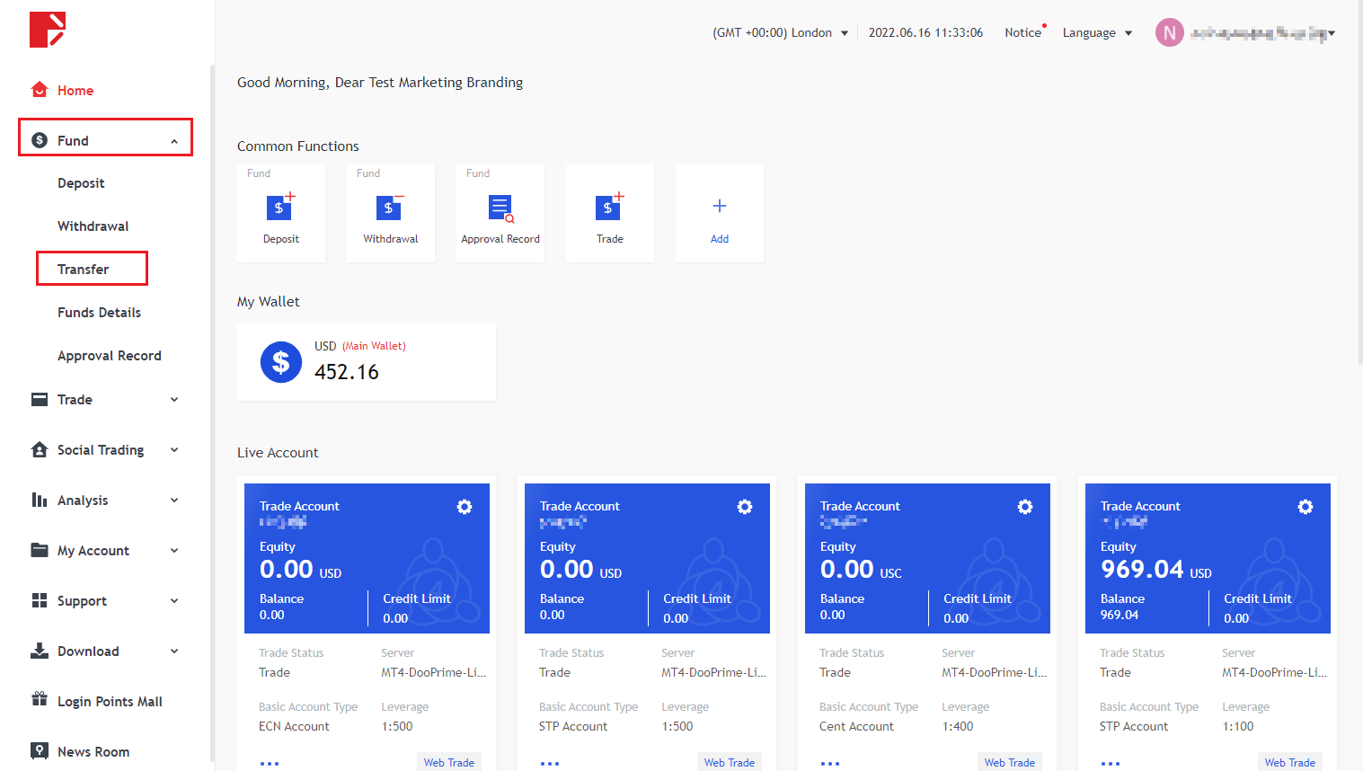 Como transferir dinheiro entre contas de negociação?