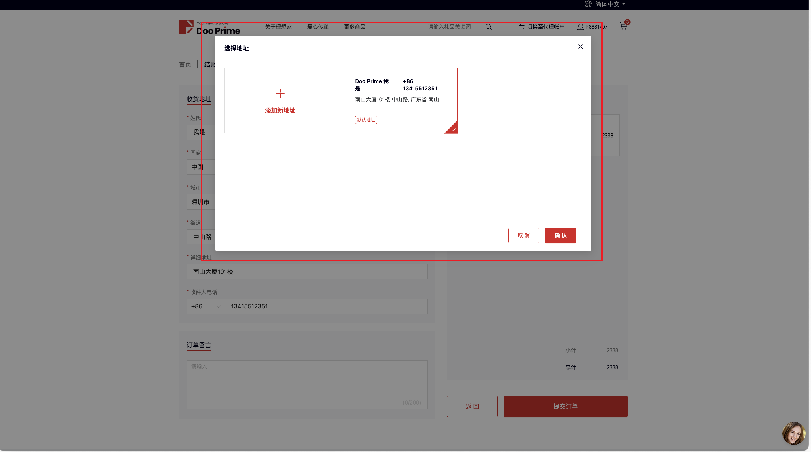 - 填写收件信息并提交订单即。亦可设定默认地址,最多可储存20个自定义地址。