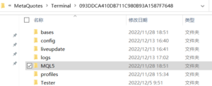 2. 在数据文件夹中打开MQL5文件后,选择目标文件夹: