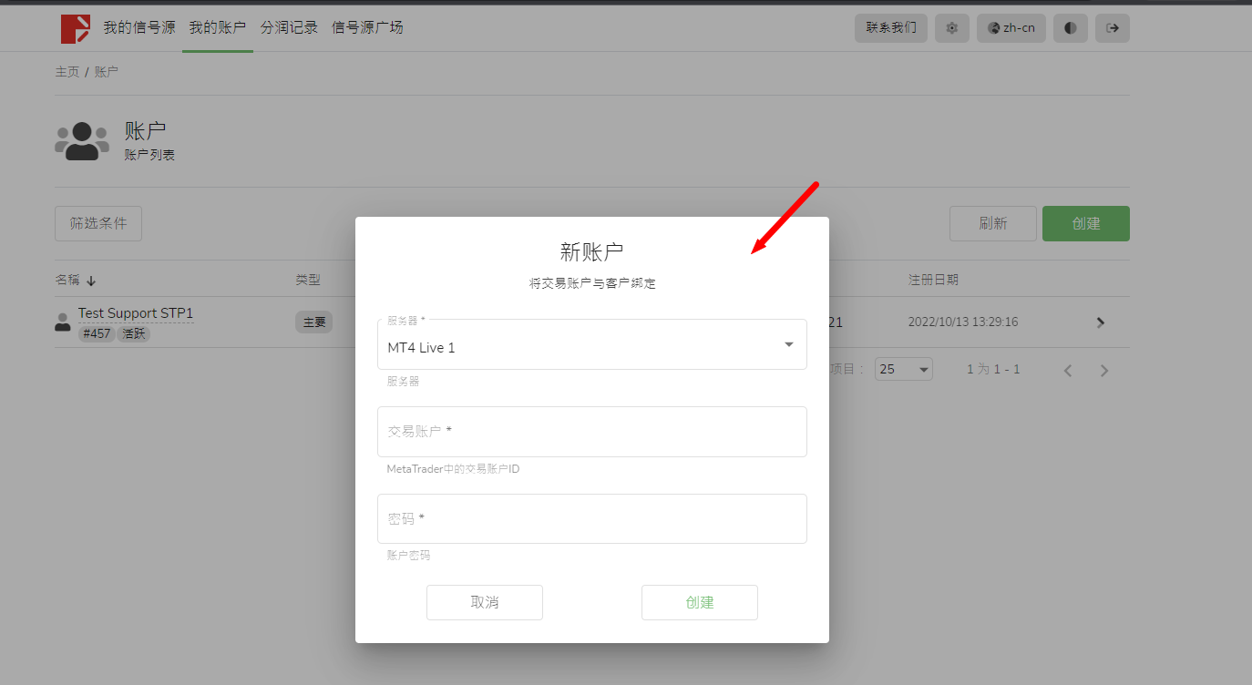 1. 您可以登錄CopyTrading,在「我的賬戶」欄目下,點擊右邊綠色按鈕「創建」。