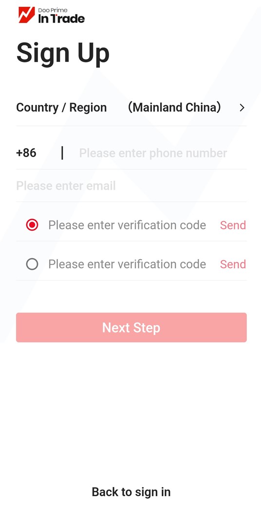 Sau đó nhập số điện thoại di động và địa chỉ email, sau đó nhấp vào Nhận mã xác minh để vượt qua xác minh email và điện thoại di động, sau đó nhấn Tiếp theo sau khi hoàn thành.