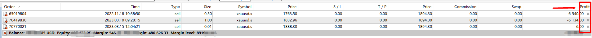 Cách xem: Chọn "Giao dịch" ở thanh menu dưới cùng của MT4 và kiểm tra lệnh vị thế. Nếu x hiển thị ở cuối lệnh có nghĩa là bạn hiện đang sử dụng mật khẩu đầu tư (mật khẩu quan sát) để đăng nhập vào tài khoản